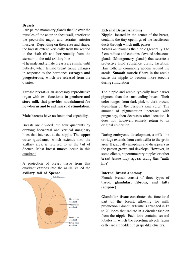 Breast Anatomy Quadrants / Breast Outline Lecture Notes N A Studocu : Understanding the anatomy of the breast is important in understanding how it makes milk.. Anatomy of the breast for medical/dental students. Learn about breast anatomy so you can better understand breast cancer, be aware of anything unusual, & have better dialogue with your doctor. This article describes the anatomy of the female breast and mammary glands, including the blood supply and innervation. Divide the breast into quadrants and examine each thoroughly. As a result, half of all breast.